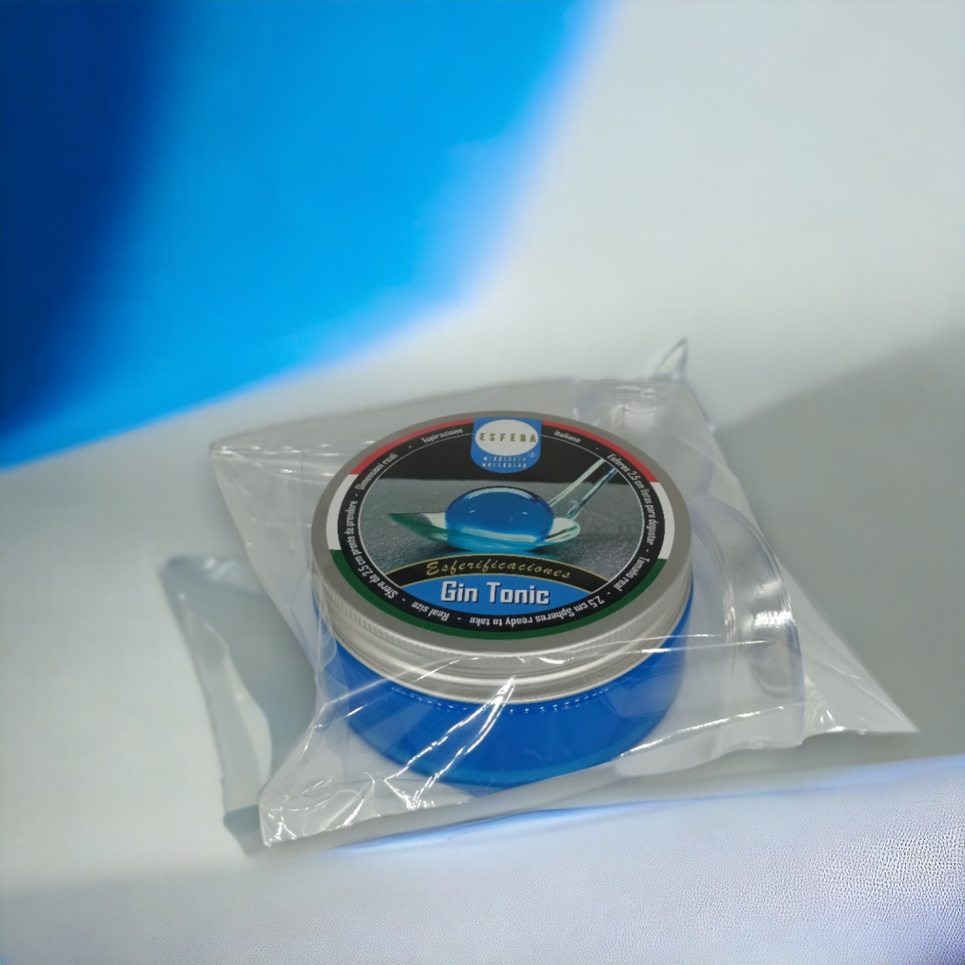 Esferas de 2,5 cm de diámetro con cóctel líquido en su interior.